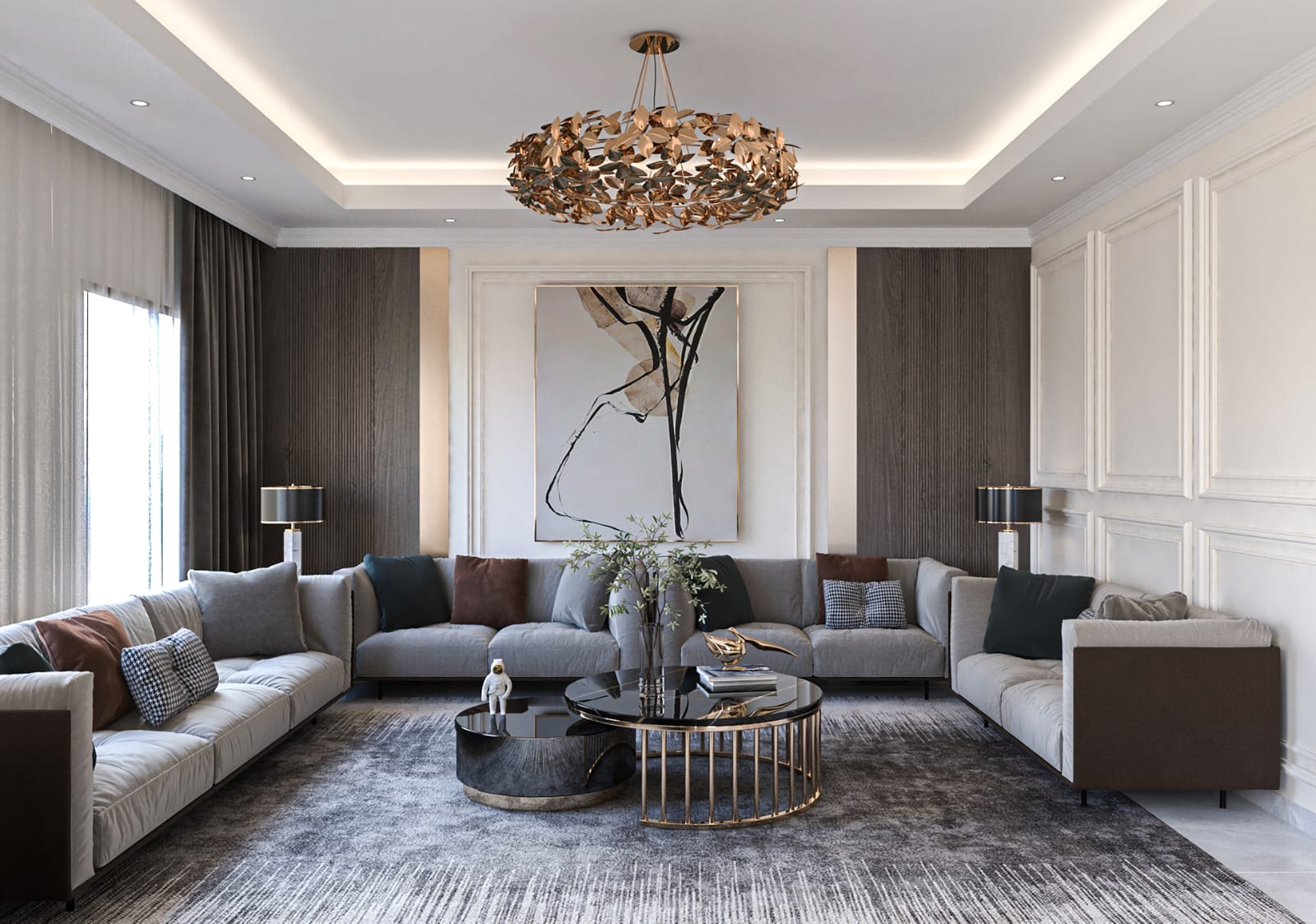تصميم داخلي فريد يعكس ذوق العميل ويخلق بيئة عملية وجمالية.